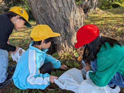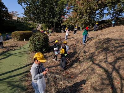 どんぐりや落ち葉、まつぼっくりなどたくさんの秋の自然物を見つけて拾い集めていました。