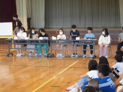 計画委員会が話合いの司会や議事進行を行いました。3年生,4年生にとっては,委員会で活躍する5,6年生の姿を見ることも,とても良い学びです。