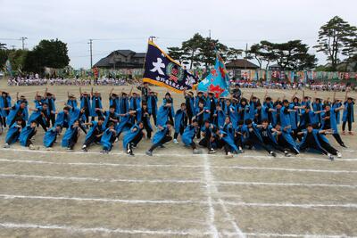大漁旗はためく校庭で、どの学年の子供たちも全力を出しきり、素晴らしい演技を披露しました。
