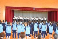 運動会に向けて、全校で全体練習を行いました。この日は開閉会式や歌の練習を行いました。運動会の歌「ゴーゴーゴー」では、元気いっぱいの声を響かせていました。