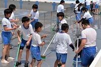 6月2日、6年生が七ヶ浜中学校のプール清掃を行いました。