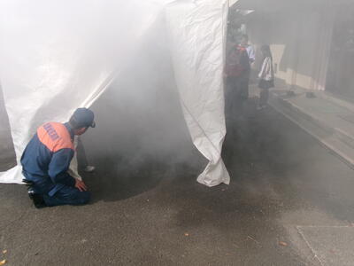 6年生が心肺蘇生の講習と煙体験をしました。