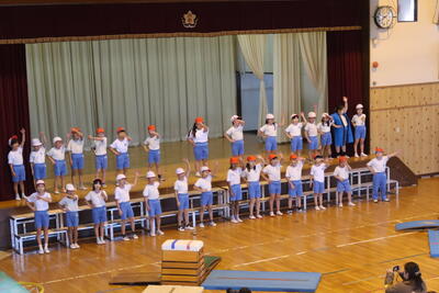 終業式では校長先生から、1学期を振り返りながら、気持ちのよい挨拶ができていることなど、良かったことについてのお話と、2学期も目標に向かってチャレンジし、更に自分を成長させてほしいとのお話がありました。