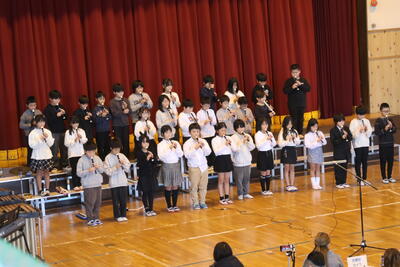 合奏、リコーダー奏、オーラリーを発表し、音楽の楽しさを伝えました。